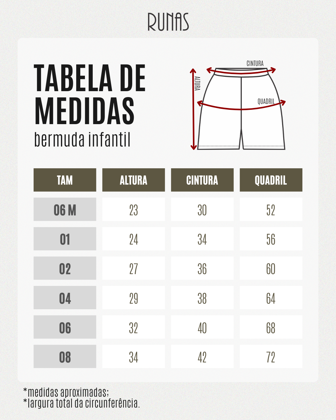 TABELA DE MEDIDAS: